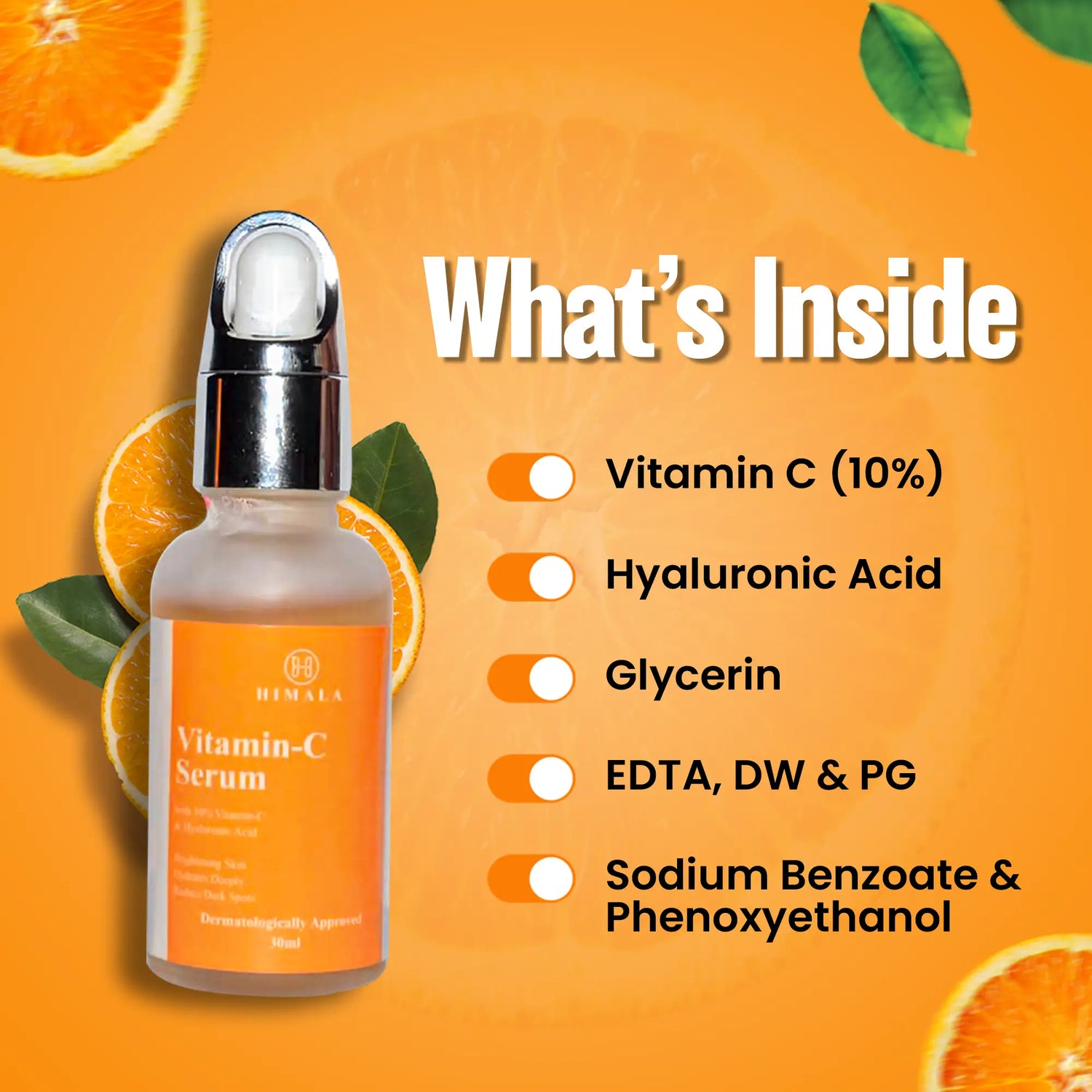 ✦ Vitamin C (10%) — Sodium Ascorbyl Phosphate: Brightens dull skin, helps fade dark spots, and protects from daily damage.